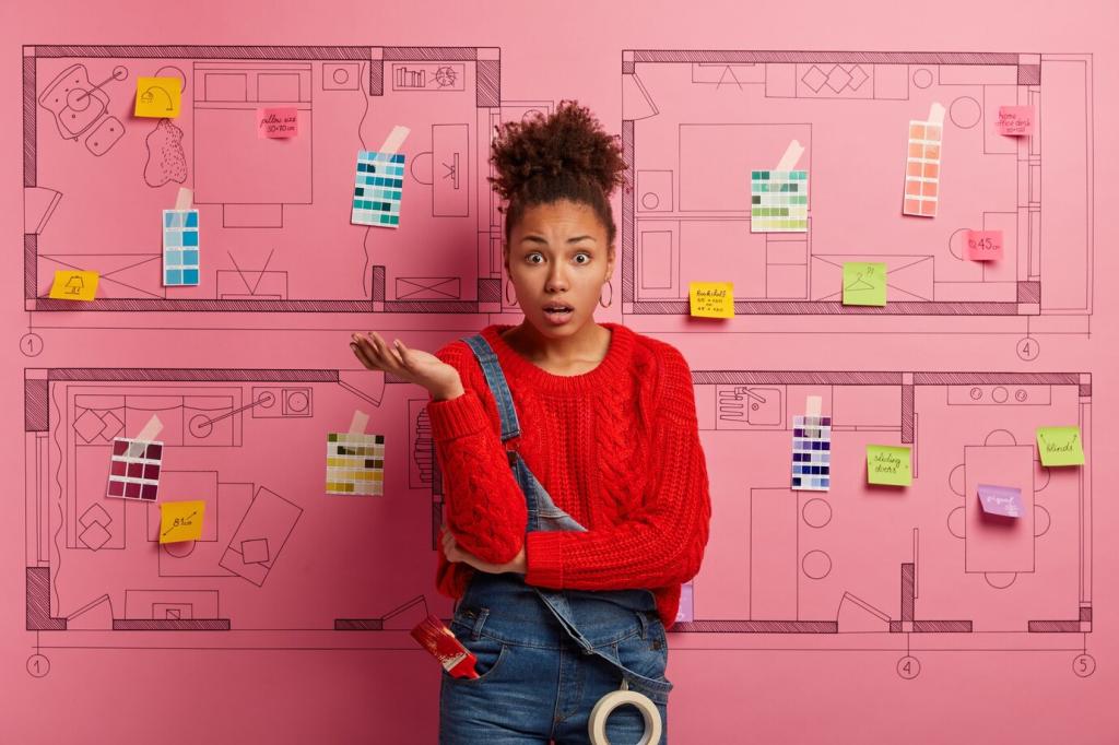 Cremige Weißnuancen, Honigholz, Graphitgrau und ein Hauch Oliv signalisieren Reinheit, Wärme und Schutz. Teste deine Palette in kleinen Social‑Posts und sammle Reaktionen. Stimme in unseren Stories ab, welche Kombi deine Marke am besten verkörpert.